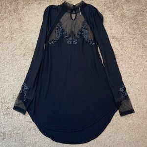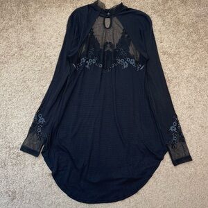Free People Black Saheli Floral Embroidered Lace Mesh Tunic Blouse Top Sz Small