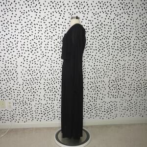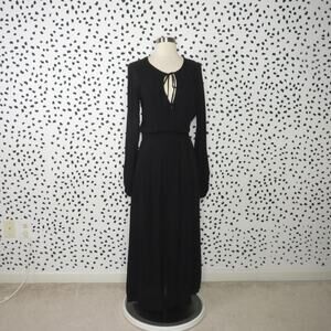 Size 2, very good condition, missing belt, button front, slit sides, tie neckline, zipper side, 100% rayon