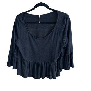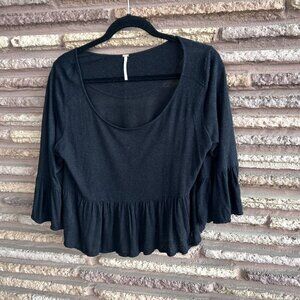 Free People Black Scoop Neck Ruffle Peplum Cropped Sweater Size Small