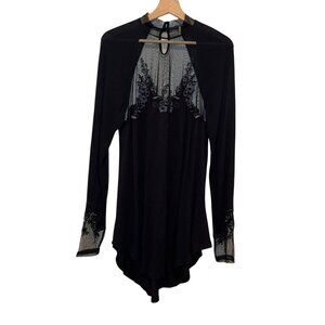 Free People Black Sheer Lace Long Sleeve Saheli Embroidered Mesh Top Women's S Y