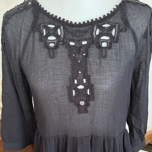 Free People Black Sheer Lace Mini Dress Boho Festival