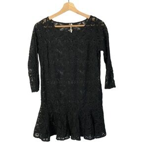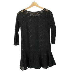 Free People Black Sheer Lace Ruffle Hem Mini Dress
