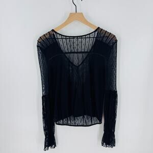 Free People Black Sheer Swiss Dot Lace Blouse Size Small Boho Romantic