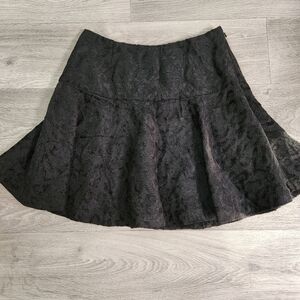Free People Black Skirt 6 Fit and Flare Chenille Cheetha Flared Skater Side Zip