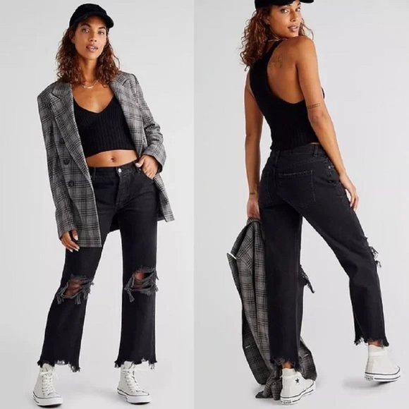 Free People Black Straight Leg Jeans