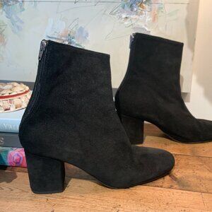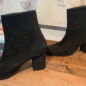 Size 41 Free People black suede Cecile Bootie with block heel that zips up the back. Only worn a handful of times (3 or 4 at the most!).