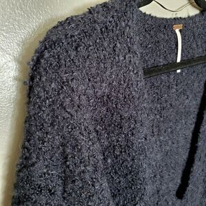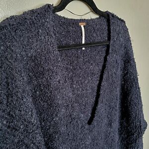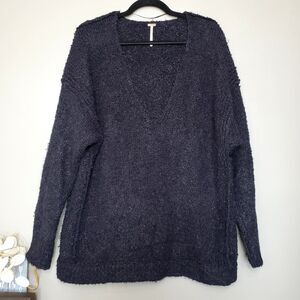 Free People Black Sweater Size Medium Oversized Fuzzy V-Neck Acrylic Alpaca