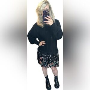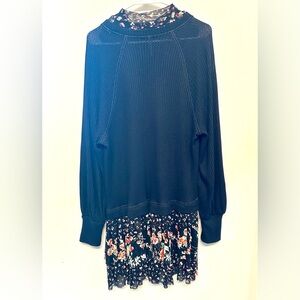 Free People Black Sweater w/ Floral Skirt Long Sleeve Dress Small