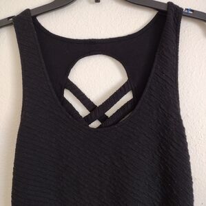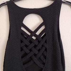 Very good condition, cute, stylish, casual, comfortable, form fitting, flattering, bodycon, flirty, sexy, chic, boho, bohemian, modern, laid back, beachy,. Textured sleeveless dress featuring a cutout back with criss cross details.