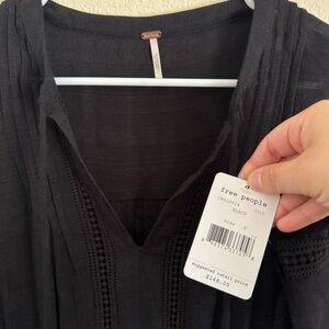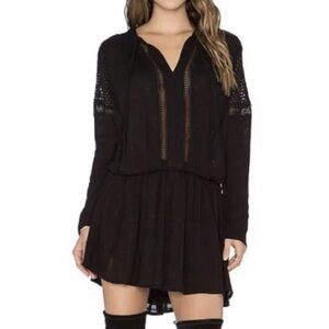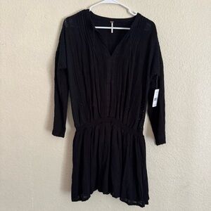Stylish black dress with V-neck. Textured fabric adds elegance. Perfect for versatile wear.