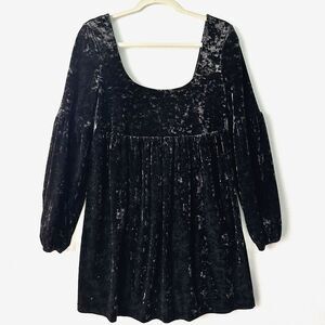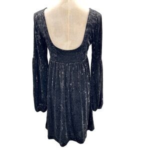 Free People Black Velvet Babydoll Dress Sz M Oh So Easy Long Sleeve Witchy Boho