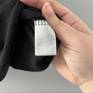 Casual black, waffle knit tank top with a scoop neck. Fitted at the bust and flares as it gets longer. Size XS