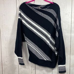 Free People Black & White Asymmetrical Stripe Knit Sweater Size M Boho Slouchy