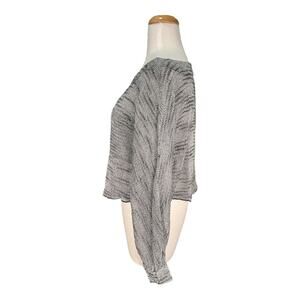 Free People Black & White Boat Neck Tight Knit Long Sleeve Cropped Sweater Size Small Side Pocket Light Weight