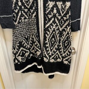 Free People Black White Moon Pattern Cardigan Hooded Sweater Coat Long Jacket M