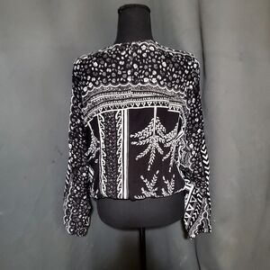 Free People Black White ‘Yo Yo Geo’ Long Sleeve Peasant Blouse Size Small in good condition.