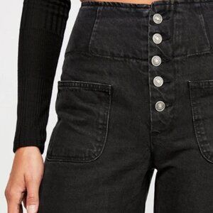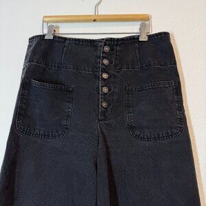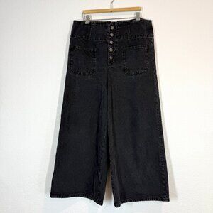 Free People Black Wide Leg Crop Jeans Exposed Button Fly High Rise 31
