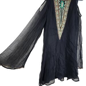 Free People Black XS Beaded Rhinestone Long Sleeve Dress