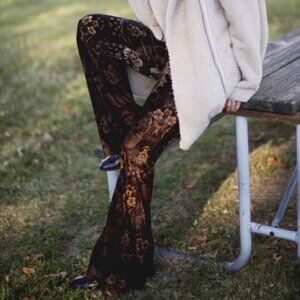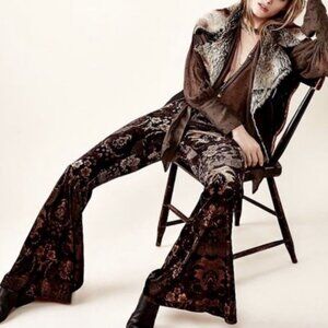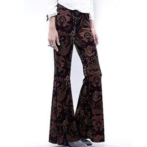 Free People Black and Brown Floral Bell Bottom Pants
