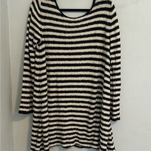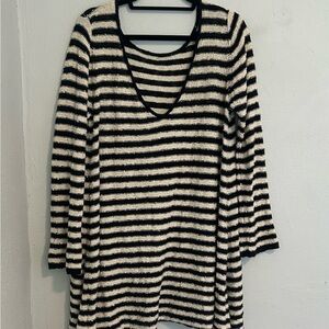 Chic striped tunic with a relaxed fit. Features a flattering V-neckline. Perfect for casual outings.