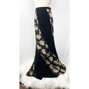 Free People | Black and Floral Swirl Maxi Skirt | Sz 10