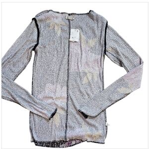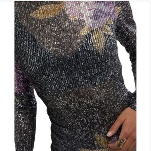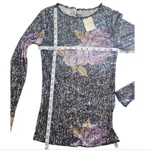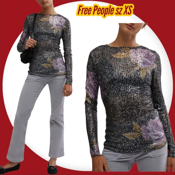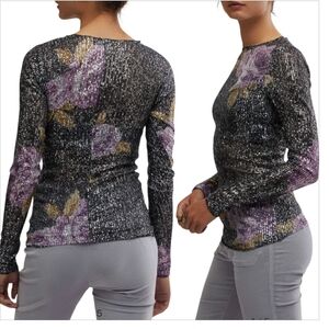 Free People Black and Purple Floral Sequin Long Sleeves Blouse Top