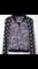 Features: black and purple mixed media floral print, bomber style jacket with snap button closure, collared