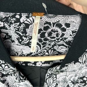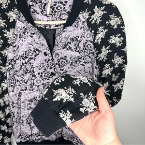 Title: Free People Black and Purple Floral Snap Button Long Sleeve Bomber Jacket Size Small