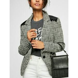 Free People Black and White Houndstooth Rodeo Blazer Size Small Jacket NWOT