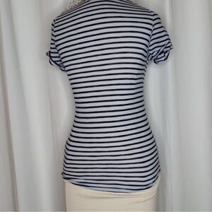 Stylish striped tee with short sleeves. Perfect for casual wear. Add a classic touch to your outfit.