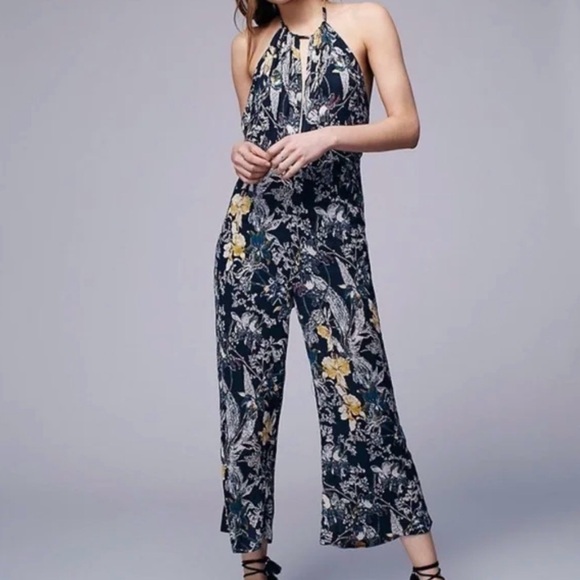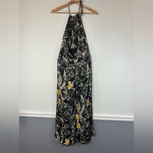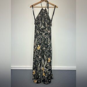 Free People Black and Yellow Floral Backless jumpsuit Size 2