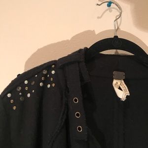Black We the Free by Free People FP jacket with embellished shoulders and sleeves. Jacket is kind of cropped has a rock and roll military style to it.
