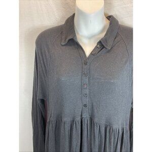 The Free People Black long sleeve Jersey dress is a stylish and versatile piece perfect for various occasions like travel, parties, or casual wear. Made from a comfortable and stretchy rayon linen fabric with a tiered cut out detail, this knee-length dress features a Henley neckline and button closure. The black solid color, long sleeves, and accentuated layered design give it a witchy goth vibe that sets it apart from other dresses. Ideal for women who appreciate a flowy and comfortable style, this dress by Free People is a must-have for those looking to add a touch of edgy sophistication to their wardrobe.