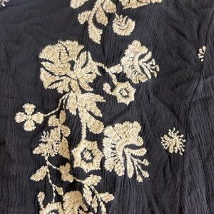 Free People - Black swing linen dress with cream embroidery - Size M