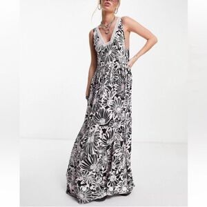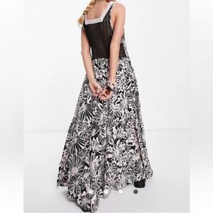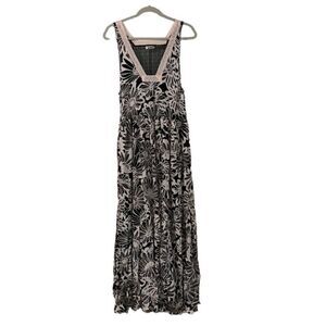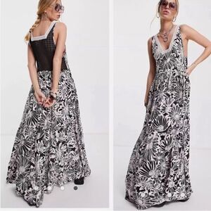 Free People Black/Blush Pink Floral Print Maxi Slip on Dress.