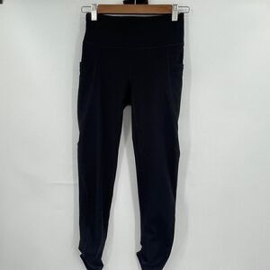 Free People Black High Waisted Movement Time Is Now Smocked Leggings Size XS