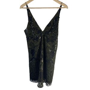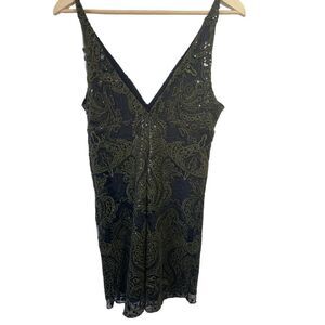 Free People Black/Olive Embellished Sequin Slip Dress Sz XS