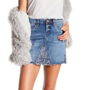 Free People BlankNYC Way Back When Stud Embellished Bling Cutoff Denim Skirt 28