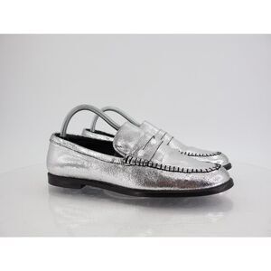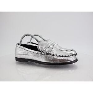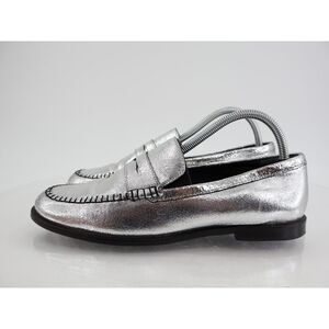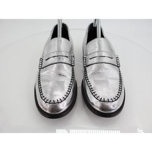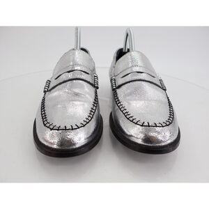 Free People Blanket Stitch Loafer Women's 9 Silver Metallic Leather Slip On Shoe