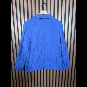 Free People Blazer Jacket Small Womens Blue 1-Button Pockets Casual Cotton Linen