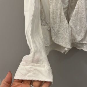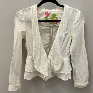 Free People Blazer Lace Shawl Collar Linen Cotton Blend White Size 0 Ruffled