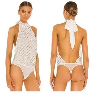 New without tag Free People Bling Bling Cha Ching Bodysuit/Top with flaw: embellishments are missing on the right side by the underarm/breast area (see last photo).