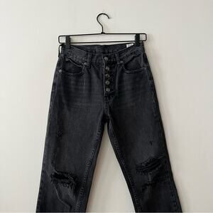 Free People Blossom Rigid Distressed Jeans in Black Wash