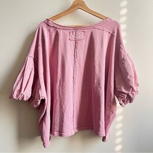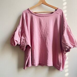 Free People Blossom Tee in Pink size X-Large Oversized Puff Sleeve Cotton Boho