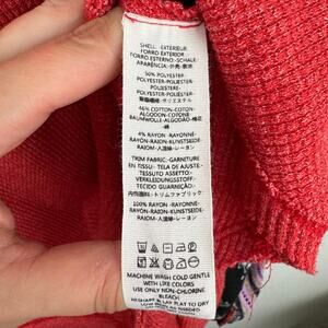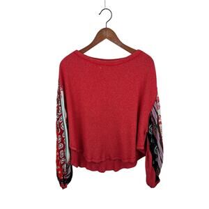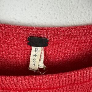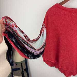 Red waffle knit, voluminous long sleeves with elastic cuffs, oversized fit, size small.