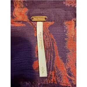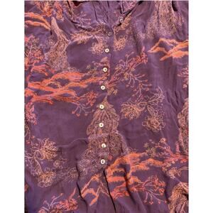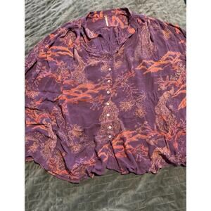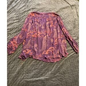 Free People Blouse, Button Down, Oversized, Peacock Print, Purple, Size Small