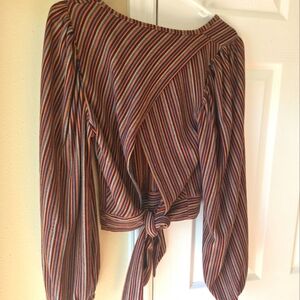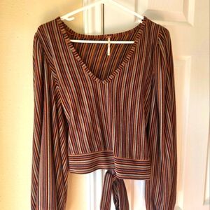 Free People Blouse M Autumn Nights Striped Southwestern Cropped Open Back Tie