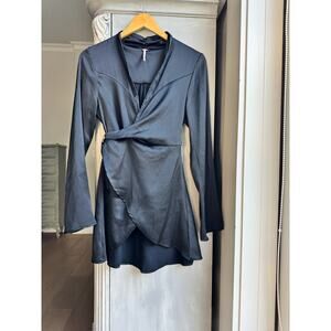 Free People Blouse Sz S Flowy Black Long Sleeve Wrap Top Textured Harley Tunic