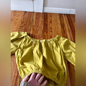 Free People Blouse Top Yellow/Green/Citron Women's Boho Cropped Small