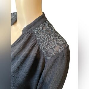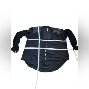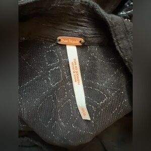 Free People Blouse Womens Canyon Rose Hi-Lo black button down embroidered Size S